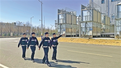近日,包头市公安局稀土高新区公安分局民馨路派出所扎实推进警企联勤联动,深入辖区企业开展巡逻防范、矛盾纠纷排查化解、安全宣传等工作,助力辖区营商环境优化升级。图为民警在企业厂区内巡逻。刘译炜 摄