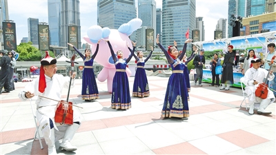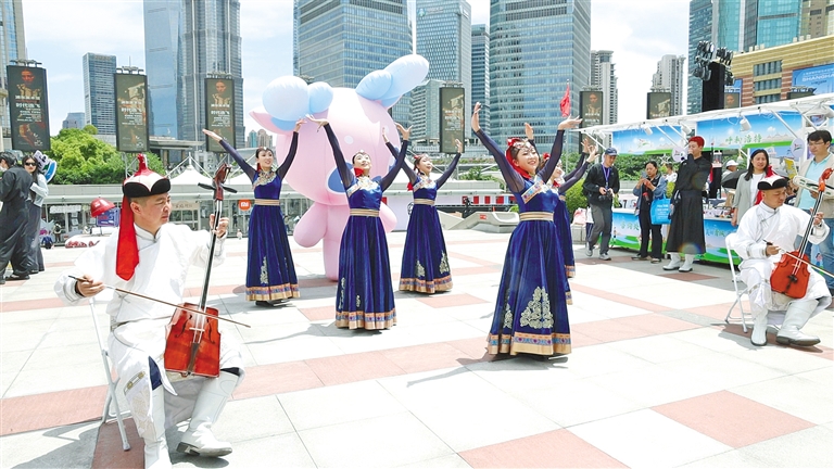 推介会现场,身着盛装的乌兰牧骑演员用精湛的歌舞表演,将非遗文化的独特魅力展现得淋漓尽致,让上海市民近距离感受着兴安盟深厚的文化底蕴和浓郁的民族风情。期间,兴安盟还精心打造了银发疗愈、亲子研学等多条精品旅游线路产品,并深入上海市社区进行推广。