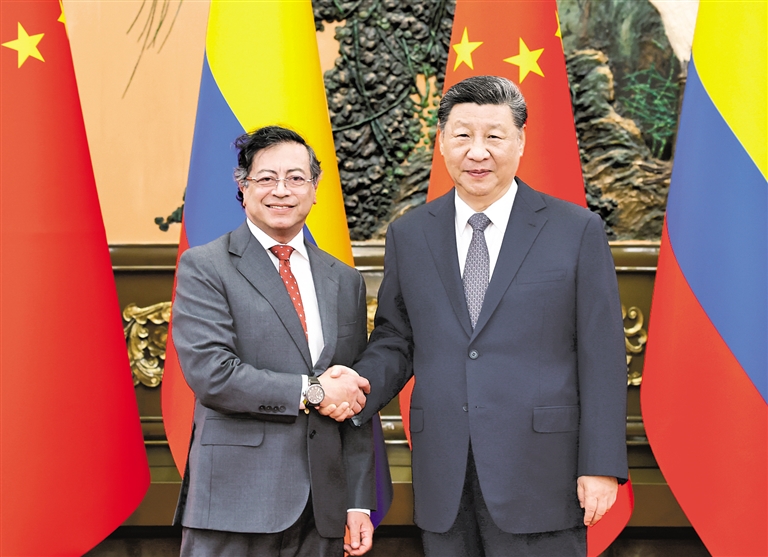 佩特罗表示,哥伦比亚与中国的友好关系源远流长,哥方期待深入发展对华关系。双方要深化政治互信,加强相互支持。共建“一带一路”,拓展贸易、基础设施、新能源、人工智能等领域合作,改善人民生活。当前,国际局势复杂多变,个别国家唯利是图的做法不利于世界,各国应团结应对。哥方愿同中方密切配合,捍卫国际公平正义,维护发展中国家共同利益。