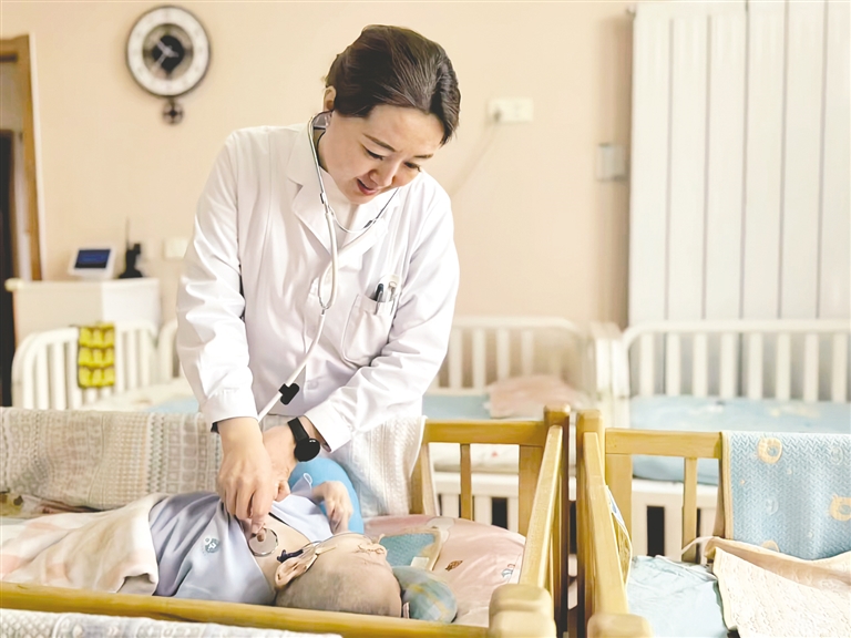 “孩子,乖,喝点水,再吃一颗退烧药。”“吃了药,病就好了,妈妈给你们安排好吃的。”“孩子们,你们休息一会儿,妈妈给你们讲安徒生童话故事。”包头市儿童福利院肖霞妈妈一边安抚生病的孩子,一边照护他们的生活。