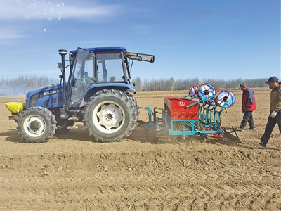 初夏时节,内蒙古各地农民抢抓农时加速春播工作,田间地头一派繁忙景象。