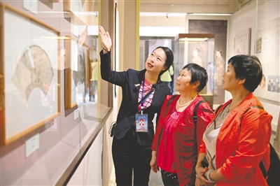 5月18日,来自广东的游客在呼和浩特市公主府博物馆聆听讲解员的介绍。当日,公主府博物馆立足文化传承与创新,结合馆内特色举办系列主题活动,通过“景、展、玩、游”四维创新模式,推动传统文化与现代体验深度融合。