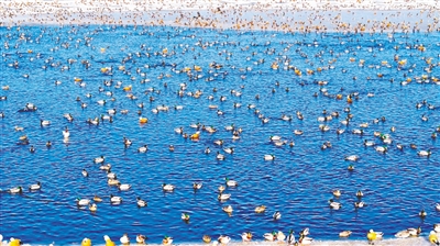 乌梁素海的变迁更具说服力。“经监测,今年迁徙来的候鸟要比往年增加许多,包括疣鼻天鹅、灰雁、白鹭、苍鹭等。目前,灰雁有1万只以上,最大的疣鼻天鹅群天鹅数量能达到60至80只。”乌拉特国家级自然保护区管理局乌梁素海湿地水禽保护科负责人张勇告诉记者。