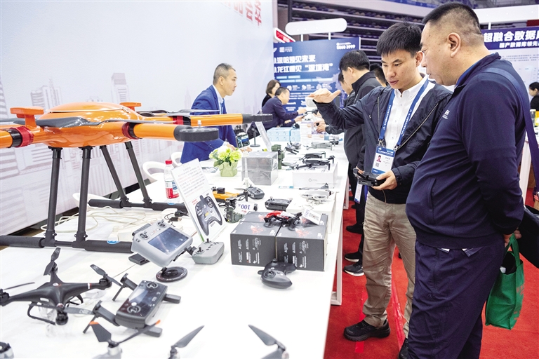 5月18日,在哈洽会深圳展区,工作人员向参观者介绍无人机产品。在哈尔滨举办的第三十四届哈洽会吸引超100家科创企业参展,无人驾驶、商用卫星、人形机器人等新技术新产品展示率达15%。在哈洽会展会现场,先进制造、人工智能、数字经济等一系列创新性、互动性“数智”展品吸引大量客商和民众驻足了解、体验,展示出科技创新发展新动态和科技转化成果,为新质生产力发展注入活力。 新华社记者 谢剑飞 摄