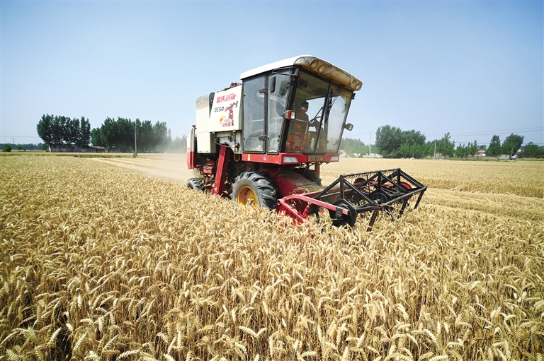 5月26日,河南省开封市鼓楼区仙人庄街道仙人庄村村民在田间收获小麦。 新华社发