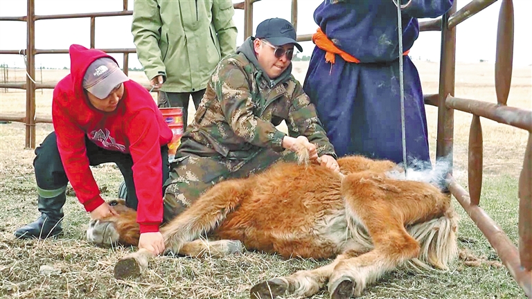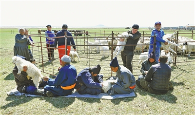 5月25日一大早,锡尼河东苏木哈日嘎那嘎查牧民巴特扎布和家人就忙碌起来,100多只新出生的幼畜已经在圈里排好队等候,有的要去势,有的要剪耳标,有的要打马印,亲朋好友都来帮忙,吸引了周边及外省游客百余人共同庆祝巴特扎布家的“伊慕讷”。