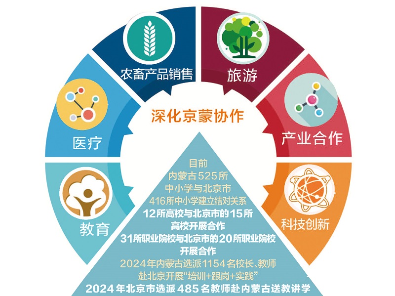●2023年6月,京蒙两地政府签订《全面深化京蒙协作框架协议》,提出着力实施教育、医疗、农畜产品销售、旅游、产业合作、科技创新等“六个倍增计划”。