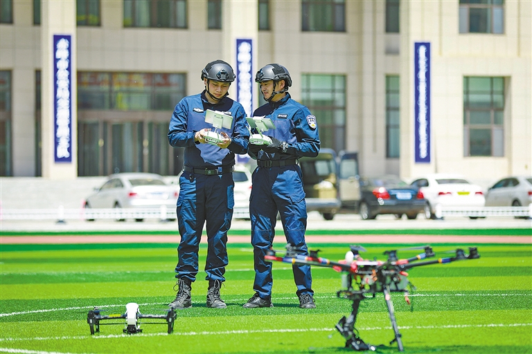 近日,赤峰市公安局红山区分局反恐怖和特巡警大队队员调试无人机设备,为空中巡逻做准备。端午节期间,该大队启动“空中看+地面管”立体巡防模式,以科技赋能治安防控,为辖区群众营造安全稳定的节日环境。成岩 摄