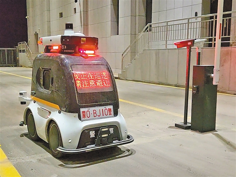口岸闭关后,智能化管理仍在继续。在甘其毛都口岸限定区域,被称为“灵犬”的无人智巡机器人准时启动巡逻任务。甘其毛都出入境边防检查站边防检查处副处长赵磊介绍:“无人智巡机器人是甘其毛都出入境边防检查站与科技公司共同研发的智能巡逻防控装备,集成了人工智能、自动驾驶等技术,实现自主巡逻、数据采集等功能,能够满足口岸限定区域巡逻防控的工作需求,有效解决了巡逻任务繁重与执勤警力不足之间的矛盾。”