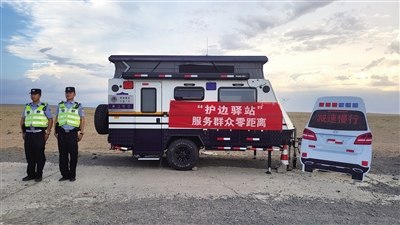 护边驿站成立首日,北京市自驾游客团一行15人行进至二连浩特市牧区时,1名成员突感胸闷、气短,车队紧急叫停。正在众人手足无措时,在附近执勤的格日勒敖都边境派出所民警闻讯而来,将游客接到EG005号护边驿站,为他们提供饮用水和简易餐食,经过休息和人工干预后,游客的病情得到舒缓。