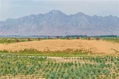为实现科学治沙、打造系统治理样板,杭锦后旗创新提出“一体化综合治理、全要素效益提升”理念。通过精准施策,构建起“沿山防沙、节水固沙、以林阻沙、护田挡沙、保湖润沙、增草锁沙、产业治沙”的立体防护网,统筹治沙、治水、治山,建立起全要素防护体系,守护绿色家园。