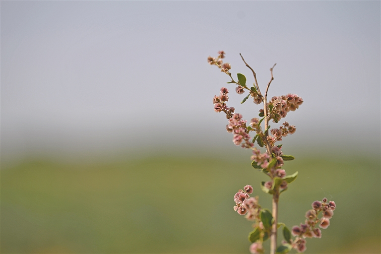 微风吹拂,走进杭锦后旗乌兰布和沙漠综合治理示范区,杭锦后旗林业和草原局副局长段光硕正在查看沙木蓼的长势。“这是我们新引进的固沙造林品种,耐旱性强,生长速度快,今后打算大面积推广。”