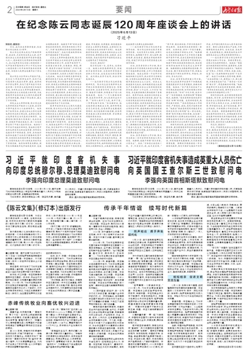 习近平就印度客机失事造成英重大人员伤亡向英国国王查尔斯三世致慰问电