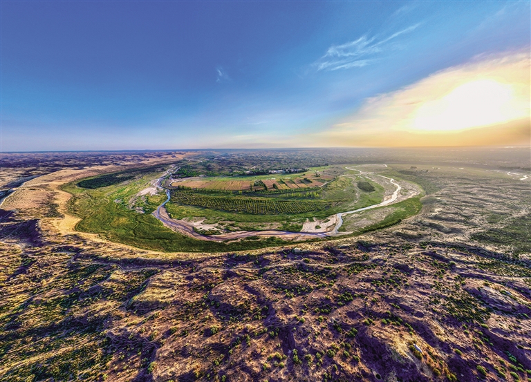 随着生态系统实现正向演替、良性循环,沙区呈现人与自然和谐共生的生态美景,“生态+农业、牧业、林果、文旅”为一体的生态示范区雏形凸显,在生态快速修复的同时,“绿色经济”焕发出强劲动能,“山青、水绿、景秀、物丰、人美”终成绿色和谐画卷。
