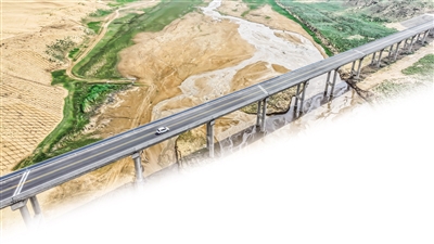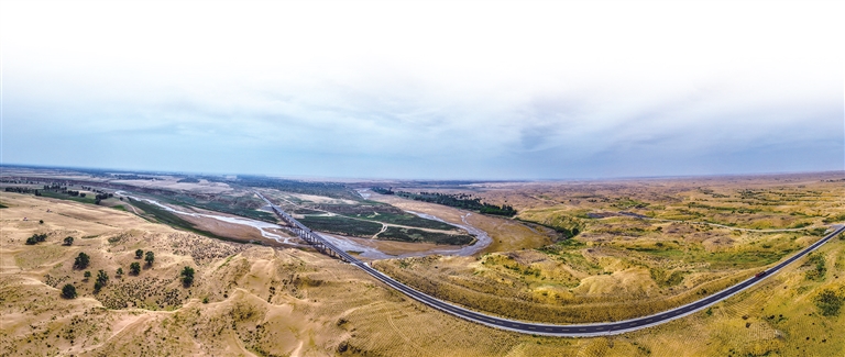 按照规划,未来,该段穿沙公路将公路建设、防沙治沙及新能源产业同步推进,实施沙障固沙1270亩,建设光伏项目用地5.5万亩,光伏装机达180万千瓦,以路治沙成果将铸就形成一条条真正意义上的绿色生态长廊。