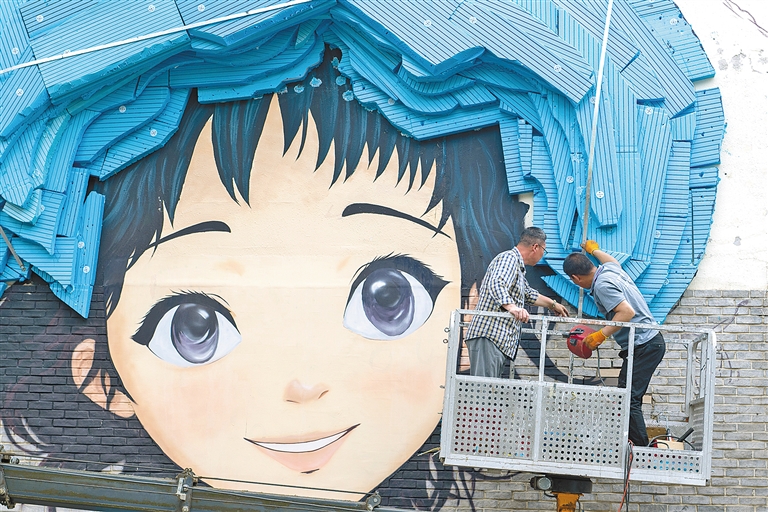 如今沿街商铺的招租、装修、营业都已有序推进,他们开始在民宅的墙面装饰上下功夫。今年5月,一场“色彩革命”让老街登上热搜——巨型创意墙体画为这里注入时尚前卫的艺术气息,与古城墙构成美学平衡。