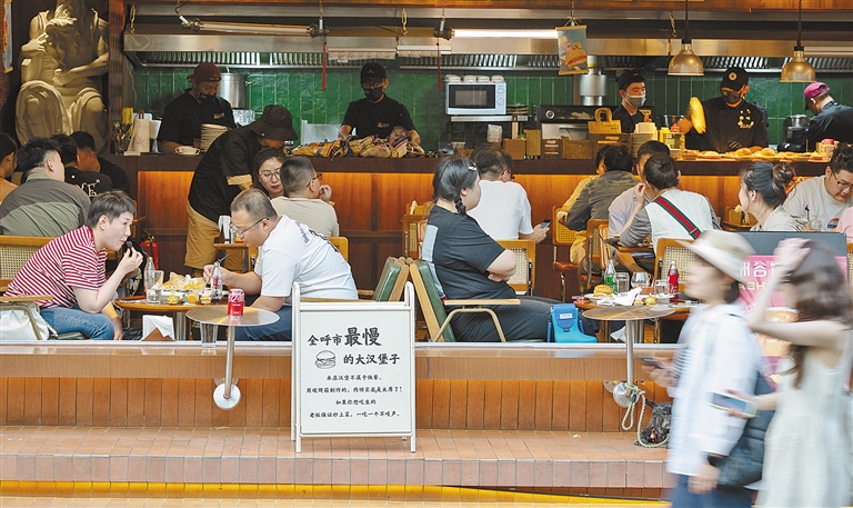 “在这个有地方特色的位置开店,如果有地方特色美食加持,一定会更有趣。”在郝智店铺的隔壁,“酷木尼”餐厅的店主刘锋自豪地介绍着他店里的“羊肉美式汉堡”。“不少游客慕名而来,就是为了感受在呼和浩特的老城墙下,吃着有本地特色的美式汉堡这种新奇体验。”