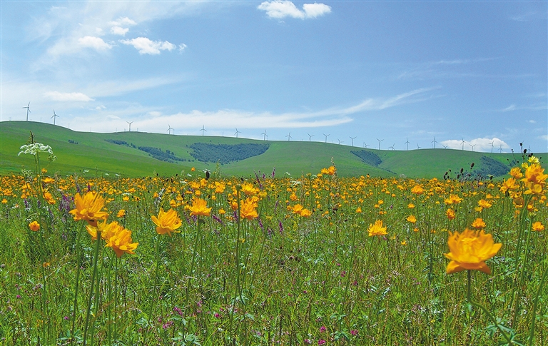 仲夏时节,金莲花托着明艳的花盏,石柱子向上踮起脚尖,鸢尾舒展着蓝紫色花瓣,这花的海洋啊,无边无际。软糯的风漫过脸颊,偷偷掀起我们的衣角,塞一两片带着阳光味道的花瓣入怀,我们便沾染了花粉气,成了大自然的一部分。