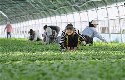 6月25日,在巴彦淖尔市杭锦后旗誉诚育苗有限责任公司育苗大棚内,工作人员正在培育西瓜幼苗。该公司拥有温室大棚与棉帘弓棚共计480余座,已形成种植、试验、新技术推广、经营为一体的蔬菜、瓜果育苗培育基地。据了解,杭锦后旗陕坝镇现有1960栋育苗大棚,通过订单育苗“链”通产业新路径,科技赋能“育”出振兴新动能等措施,将建设内蒙古西部最大育苗基地。本报记者 孟和朝鲁 摄