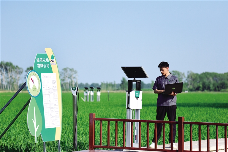6月24日,在北大荒集团黑龙江绥滨农场有限公司红山管理区,工作人员利用智慧水利灌溉系统进行水层科学管理,减少肥料流失,促进水稻秧苗生长,达到节水增效、保护黑土地的目的。近年来,黑龙江垦区北大荒集团以保护黑土耕地,有效提高粮食生产能力为目标,用地与养地相结合,推动农业绿色可持续发展。“十四五”以来,北大荒集团年落实黑土耕地保护示范区1145.2万亩,累计实施保护性耕作4580.8万亩、有机肥深翻还田916万亩。 新华社发