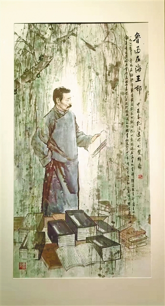 当然,国画《鲁迅在海王邨》也令人过目难忘。将历史的写真性与现实的理想性融合起来,将鲁迅先生被垂柳和群书衬托得十分高大,是北京文史研究馆纪清远馆员欲“揭秘”鲁迅之所以是“新文化运动的旗手”的基本原因。