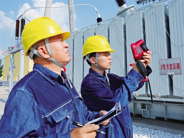 6月27日,在扎兰屯市西郊220千伏变电站,工作人员使用红外测温仪采集数据。连日来,该市迎来持续高温天气,电网进入迎峰度夏重要时段,输变电工区巡保人员运用无人机、红外测温仪等设备,坚持在高温时段精准采集数据,确保电网安全稳定运行,保障地区经济社会发展和民生需求。本报记者 李新军 摄