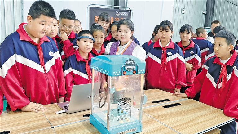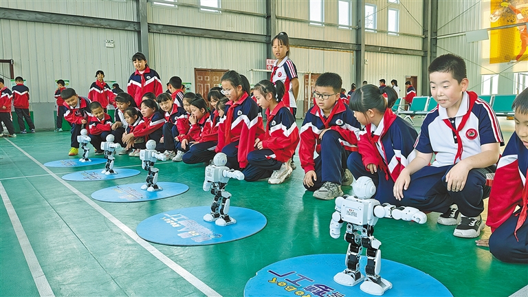 炫舞机器人表演吸引学生们驻足观看。刘宏杰 摄