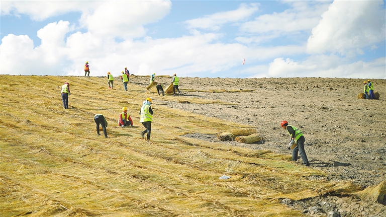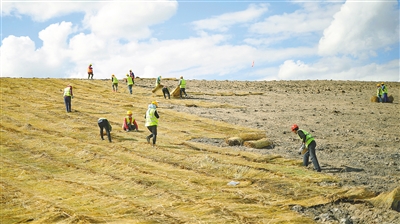 “我们采用‘工程措施为辅,生物措施为主’的技术路线,先通过客土覆盖、修建灌溉系统改善立地条件,再选用耐寒耐旱的羊草、冰草等本地物种进行植被重建,最终实现‘自维持、免维护’的近自然生态。”生态修复工程师齐工介绍道。