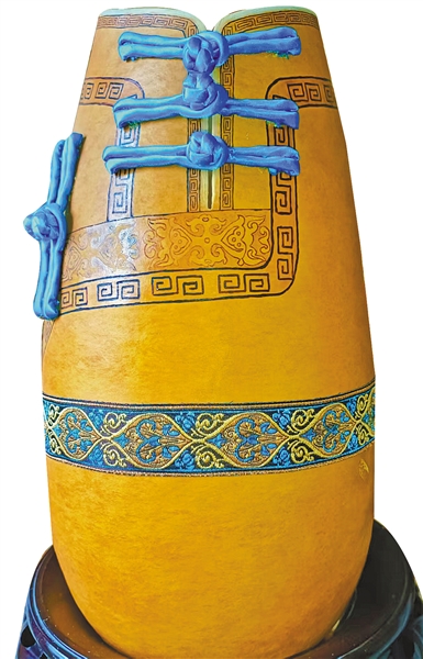 在传统题材之外,赵瑞林大胆融入蒙古族文化元素,让骏马和蒙古包雕刻在葫芦上,使原本婉约妙曼的葫芦瞬间有了草原的味道。“非遗不能固步自封,要贴近现代人的审美。”赵瑞林说。