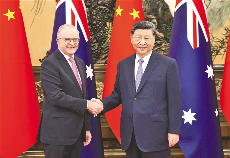 习近平再次祝贺阿尔巴尼斯当选连任。习近平指出,在双方共同努力下,中澳关系近年来走出低谷、实现转圜,给两国人民带来了实实在在福祉。这给我们最大的启示就是,坚持平等相待、求同存异、互利合作符合中澳两国和两国人民根本利益,无论国际风云如何变化,都应该坚持这个大方向不动摇。中澳全面战略伙伴关系已经开启第二个10年,中方愿同澳方一道,推动中澳关系进一步向前、向好发展,更好造福两国人民。