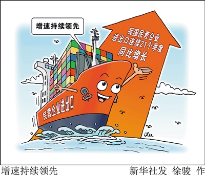 记者近日从国新办举行的新闻发布会上获悉,截至今年二季度,我国民营企业进出口已连续21个季度同比增长,增速持续领先。新华社发 徐骏 作
