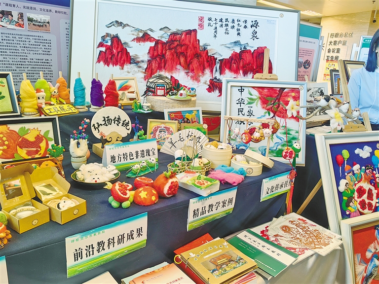 作为“一校一品”的特色美术课程,羊毛毡工坊课堂目前已在健康街小学全校普及。该校美术教师张燕燕介绍:“羊毛毡工坊已成为校园的一扇重要文化窗口,目前,学校已成功构建国画系列、民族服饰系列、传统书法系列、青花瓷工艺系列四大系列作品体系,其中部分作品还获得自治区版权局版权认证。学生在学习毛毡画技艺中,不仅能亲身体验这一古老技艺的温度与匠心,更能通过作品不断深化对中华优秀传统文化的理解与认同。”