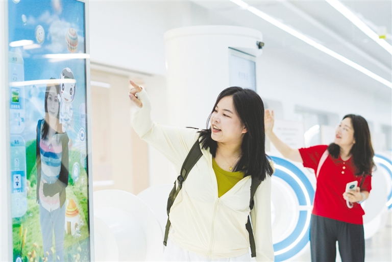 7月18日,游客在呼和浩特市伊利现代智慧健康谷景区沉浸式游览,感受乳业文化的深厚底蕴。伊利健康谷景区包含产、学、研、游、购、娱,六个旅游要素,成为“文化+旅游”“科技+旅游”“工业+旅游”“研学+旅游”的多元化旅游景区,助力呼和浩特市乃至内蒙古乳业工业旅游高质量发展。 本报记者 王晓博 摄