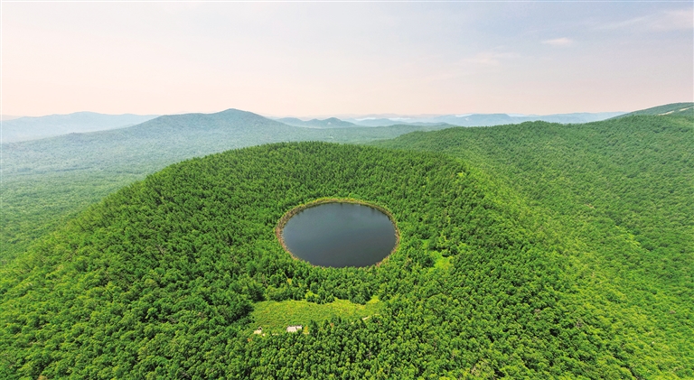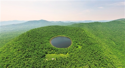 月亮天池又称基尔果天池,是火山喷发后形成的火山口湖,海拔1278米,水深7米,湖面呈完美圆形,直径达200米,从高空俯瞰,恰似一轮满月镶嵌在茂密林海中,“月亮天池”由此得名。其最令人称奇之处在于,水位常年不受气候变迁影响,始终保持稳定,堪称自然界的一大奇迹。