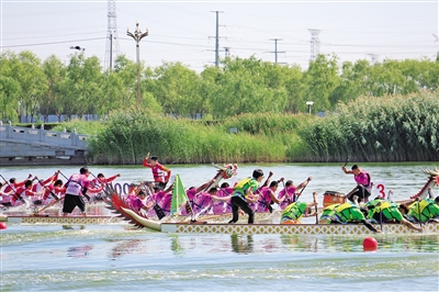 7月21日,2025全国民族民间龙舟公开赛在巴彦淖尔市磴口县火热进行,来自全国各地12支龙舟队的300余名运动员同台竞技。磴口县被誉为“百湖之乡”,十多年来,连续成功举办多次龙舟赛事,已完成相关赛事及配套设施专业化建设,并成为首个“全国民族龙舟运动基地”。 本报记者 薛来 摄