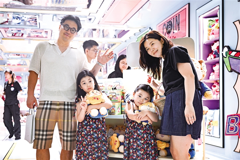 近日,韩国游客在位于上海市南京路步行街的一家潮玩店里购物。7月11日,外交部发言人称中国单方面免签和过境免签国家已分别扩大到47个和55个。在免签“朋友圈”持续扩容以及离境退税“即买即退”政策的推动下,“中国游”持续升温,“中国购”也成为入境游新趋势。据国家税务总局数据,上半年离境退税销售额同比增长94.6%。纪念品、潮玩、科技产品等成为深受外国游客喜爱的热门消费品。作为入境游“第一站”的上海见证了我国强劲的入境游消费活力。最新统计数据显示,今年上半年,上海海关共验核离境退税申请单6.4万票,比去年同期大幅增长1.4倍,数量已与去年全年总单数基本持平。 新华社记者 唐斯琦 摄
