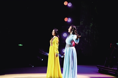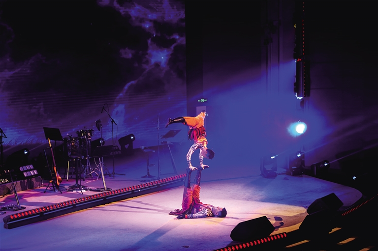 《花海阿尔山》的歌声清澈如溪,背景大屏杜鹃盛放的影像漫过观众视线,将阿尔山的秀美娓娓道来。《酒歌》的互动环节更是让气氛沸腾——孟根花热情的邀约,观众自发的击掌打节拍,跟着歌曲一起律动。来自吉林的90后游客小林笑着说:“以前觉得民族音乐离生活很远,今天才发现能这么燃。”在歌曲《万丽》欢快的节奏里,身着蒙古族服饰的“万丽”姑娘们走进观众席跳起舞蹈,不少观众也加入其中,和演员们热情互动。呼麦表演《四岁的海骝马》,文丽用喉音演绎的马嘶声与双合尔的马头琴交相辉映,观众仿佛置身万马奔腾的草原。杂技表演《双人力》向观众展示力与美,《坛技》则展示了杂技演员高超的技艺。