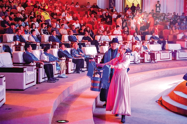 “请接受来自内蒙古的敬意。”当主持人道出这句问候时,演员手捧蓝色哈达沿剧场通道缓缓走来。圣水迎宾环节的圣洁氛围里,观众从旁观者变成了参与者——正如内蒙古艺术剧院现代艺术团副团长高金山所说:“我们要让每一位观众都成为北疆文化的见证者,将内蒙古的表演在阿尔山最美的季节呈现给全国各地过来游玩的客人。”从《赞歌》到《我和草原有个约定》,北疆文化正以这样鲜活的方式完成现代表达。