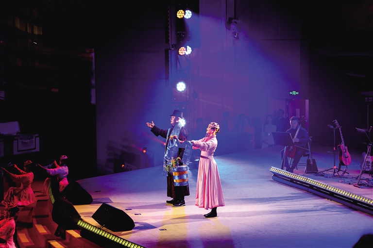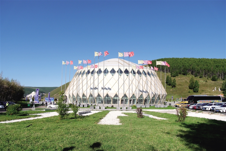 当《我和草原有个约定》响起,全体演员与观众齐声合唱,内蒙古民歌特有的悠长尾音在剧场回荡,观众轻摇哈达形成的蓝色波浪,与舞台上的光影交融成河。“在阿尔山唱歌,和在大剧院不一样。”歌手呼和木其尔说,“这里的风、空气里的草木香,都能让歌声更有生命力。”最初接到驻场演出邀请时,他曾担心重复表演会消磨热情,但首演时观众的眼神让他释然。他说:“每次唱到‘天边有一片辽阔的大草原’,看到台下亮晶晶的目光,就知道这是最生动的舞台。”