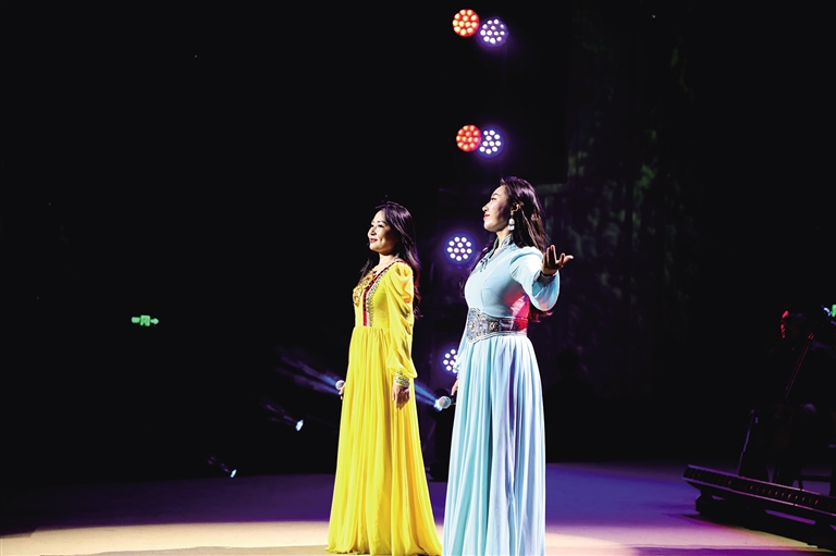 20时整,剧场内的灯光渐暗,舞台中央的追光突然亮起,像从夜空坠落的一束月光,《赞歌》悠扬厚重的歌声渐起。13个主体节目与4个互动环节如珍珠般串联,歌唱、舞蹈、杂技、马头琴在90分钟里流转,让观众在光影变幻中触摸到内蒙古文化的温热肌理。
