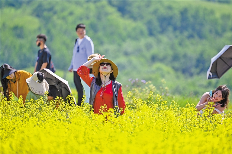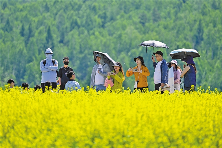 夏风轻拂、花儿摇曳。眼下,呼伦贝尔市额尔古纳市奥洛契庄园的油菜花迎来最佳观赏期,金色花海铺展开一幅鲜亮、灵动的田园画卷,令游客们陶醉其中流连忘返。