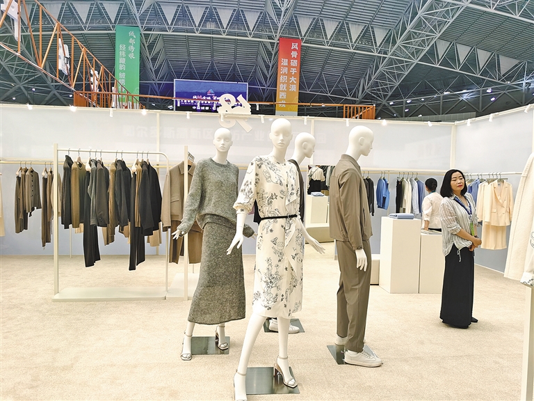 展位上,琳琅满目的高端羊绒制品设计精美、品质上乘,吸引了不少参观者驻足咨询。