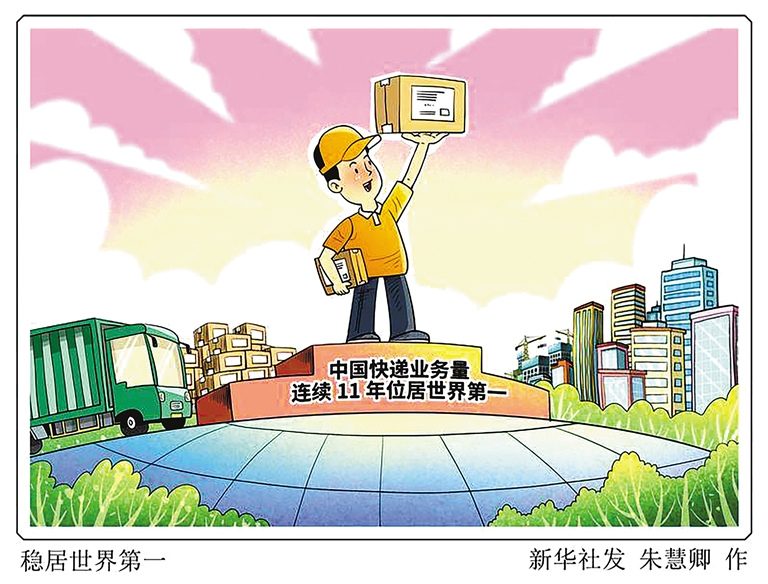 近日,国家邮政局局长在国新办举行的“高质量完成‘十四五’规划”系列主题新闻发布会上表示,中国快递业务量连续11年位居世界第一,目前平均每天揽收快件超过5亿件,庞大的业务量背后是高效的资源配置,相当于每一秒就有近6000个快递进入寄递渠道,通过寄递网络在国内外流动。新华社发 朱慧卿 作