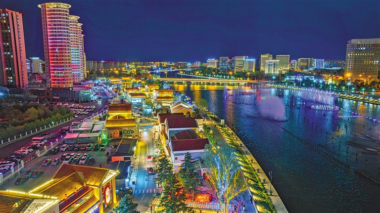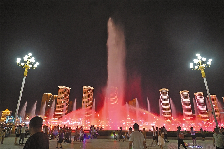 华灯初上,呼和浩特如意河音乐喷泉水姿曼妙,如梦如幻。五彩斑斓的灯光与灵动的水柱交相辉映,伴随着优美的旋律舒展舞动,时而温柔婉约,时而气势磅礴,为广大市民游客呈上夏日里的视听盛宴。