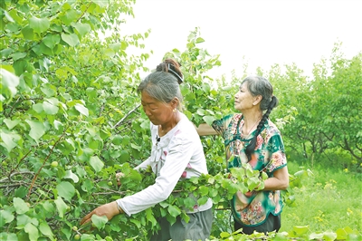 布拉格台嘎查村民胡军甲说:“今年我们嘎查联系收杏核的人来到山上,我们打完就可以卖,不用东奔西跑了,我和老伴儿每天能挣500元钱。”