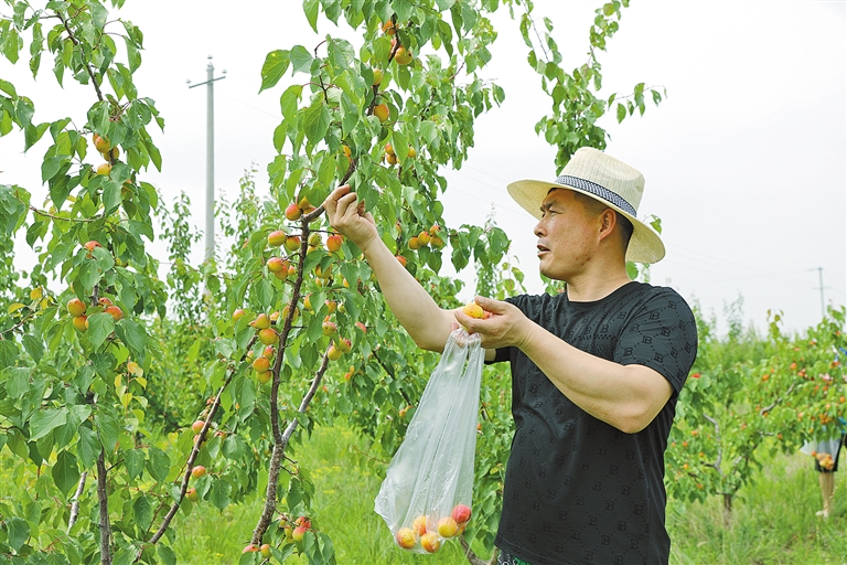 游客陈春林说:“每年我都带着家里人来这里摘杏,这里的杏又大又好吃,摘完还能在附近转一转。”