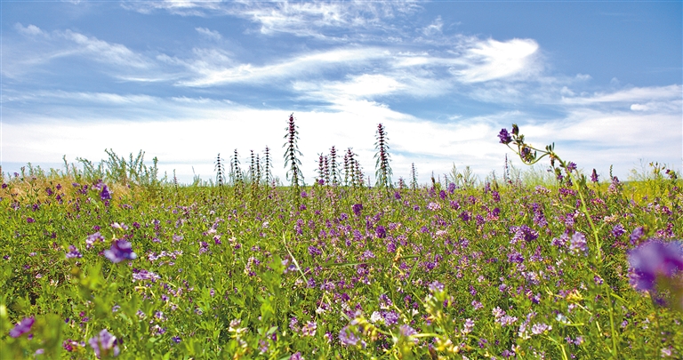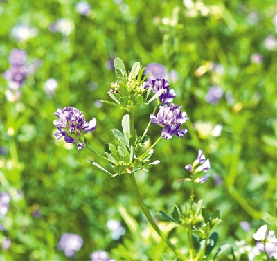 7月,位于呼和浩特市武川县二份子乡的呼和浩特市草种繁育基地内,成片的紫花苜蓿迎风摇曳,满眼的浪漫紫色令人赏心悦目。