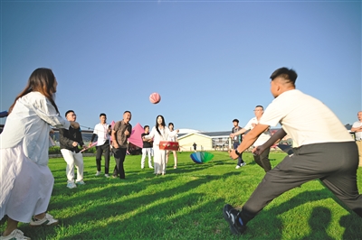 8月8日,青年职工在进行游戏活动。当日,呼和浩特市总工会在呼和浩特市蒙游记田园综合体举行了“敖包相会 青城有约”单身青年职工联谊活动,为首府单身青年职工“牵线搭桥”,370多名男女青年职工参加了联谊活动。 本报记者 牟野 摄