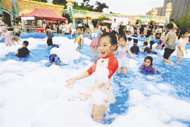 8月9日,小朋友在浙江舟山儿童公园参加“泡泡水仗大狂欢”活动。暑假期间,各地孩子参加丰富多彩的文化体育活动,充实假期生活。 新华社发