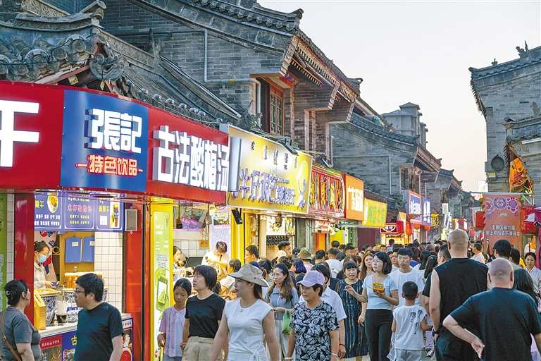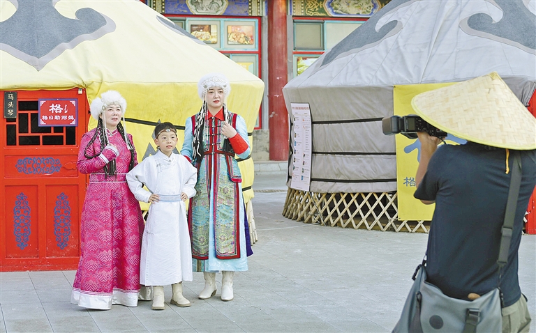 青石板铺就的古街上,传统技艺展示体验吸引着游人驻足围观,身着民族服饰的游人在旅拍中定格美好瞬间,美食香气与欢声笑语交织成鲜活的烟火图景……从白昼到夜晚,呼和浩特市玉泉区正涌动着滚烫的文旅新活力。